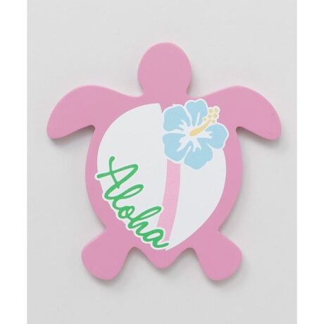 [型番:42HP5203-2025]カラフルなハイビスカスのついたホヌの形のダイカットコースター。コースターとしてだけでなく、お部屋のちょっとしたアクセントとして飾るのもおすすめです。