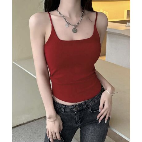 細いストラップが肩から覗くスタイルは、今どきのおしゃれなポイント。