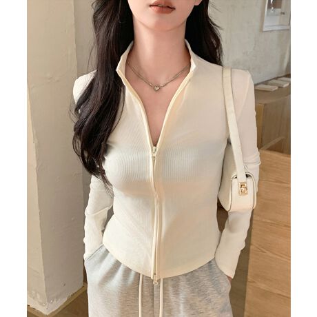 ダブルジップ仕様で自由な着こなしが楽しめ、デニムやスカートなど幅広いボトムスと相性抜群