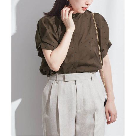 柔らかく着心地の良い涼しい素材を使用し、袖口にタックを入れて女性らしさと大人っぽい雰囲気のシャツブラウス。