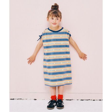 夏だいすきロゴボーダーシャーリングスリーブワンピース