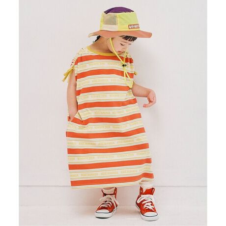夏だいすきロゴボーダーシャーリングスリーブワンピース