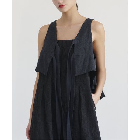 刺繍とランダムギャザーのバックデザインが印象的なフリルベスト。