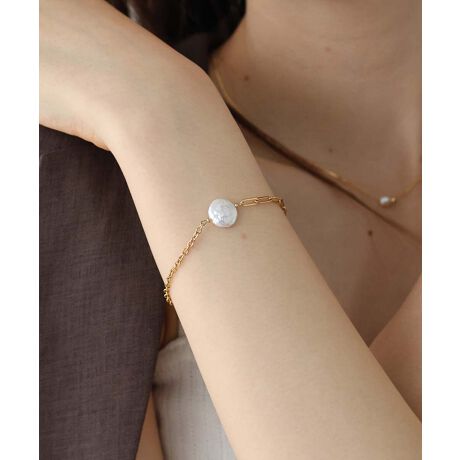 上品な輝きを放つ淡水パールがポイントになったブレスレット。