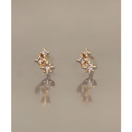夜空に浮かぶ星座のような、サイズの違うダイヤモンドがリズミカルに並んだK10YGピアス。