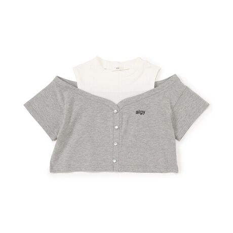 タンクトップにオフショルトップスを重ね着風のデザインTシャツ★