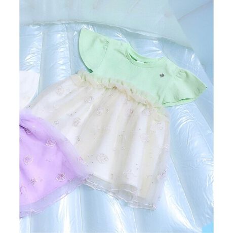 ふわっと広がるチュールにはシェルやリボンの刺繍が施され、