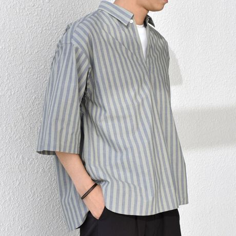 スモールウェイブという清涼感のある素材を使用したスキッパープルオーバーシャツ
