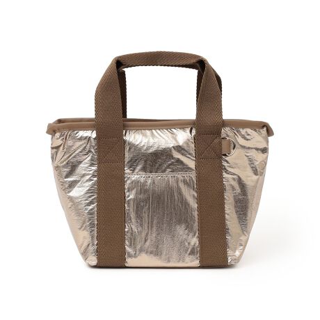 メタリックカラーが目を惹く、取り外し可能な保温冷ポーチ付き2WAYトート。