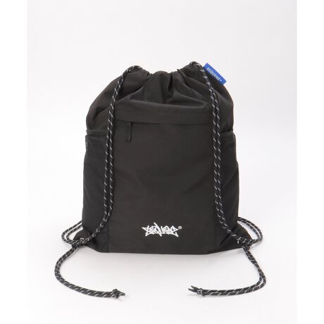シンプルなナップサック型に、アウトドアテイストのコード紐を合わせてアクティブな表情に。