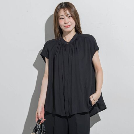 軽やかな着心地が魅力のTRスバン素材ブラウス。