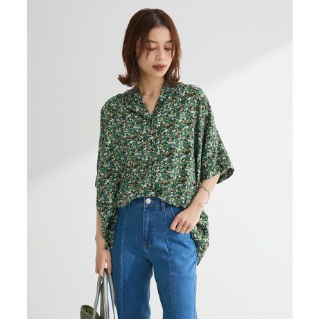ゆったりと落ち感あるシルエットに総柄プリントがおしゃれな半袖ブラウス。さらっとしたレーヨン素材で快適にご着用いただけます。襟ぐりのシャーリングデザインがさりげないアクセントに。爽やかなストライプやチェックに、モチーフ総柄を加えた豊富なカラーバリエーションにも注目のおすすめアイテムです。
