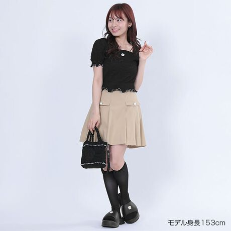 トレンドの短めの丈で、スタイルアップ。デニムと合わせて可愛さと大人っぽさのあるコーディネートがおすすめ。