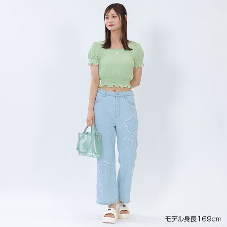 トレンドの短めの丈で、スタイルアップ。デニムと合わせて可愛さと大人っぽさのあるコーディネートがおすすめ。