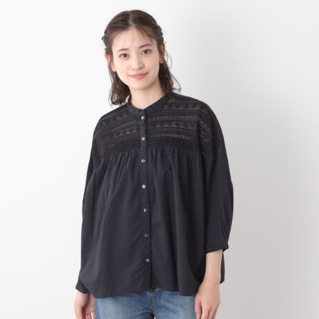 胸元から肩にかけて、繊細なリバーレースを贅沢に使用したブラウス。