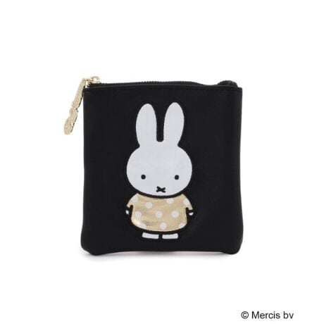 スクエアポーチ:アップリケと箔プリントがポイント。miffy70周年のチャームが引き手に付いています。
