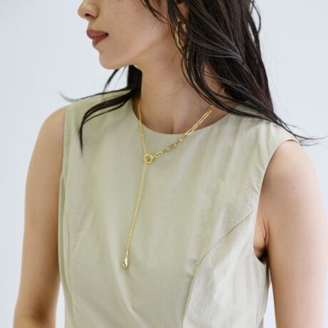 レイヤードスタイルで他のネックレスと重ねて着けることで、さらにトレンド感がアップします。