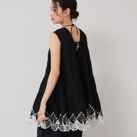 【裾スカラ刺繍/綿ボイル】ティアードブラウス