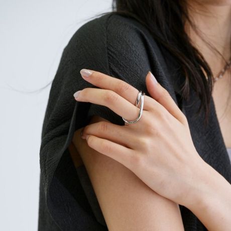洗練されたカーブが特徴のこのリングは、二つの輪が絡み合うデザインが印象的。