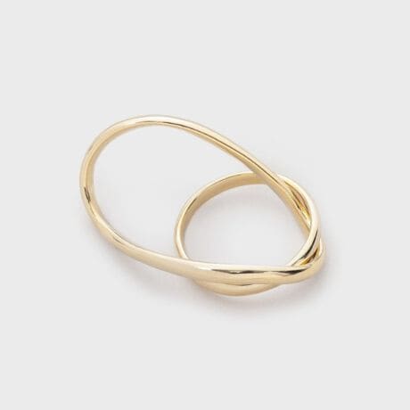 洗練されたカーブが特徴のこのリングは、二つの輪が絡み合うデザインが印象的。