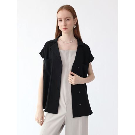 ジャケットのようなラペルとあえてダブルに仕上げた前身頃が、こなれ感たっぷりに仕上げたフレンチスリーブシャツ。胸元にはやや大きなパットポケットを施すことでデザイン性をプラス。二の腕や肩周りがすっきりと見えるスリーブ丈も嬉しいポイントです。