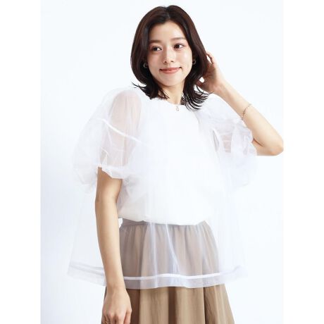 チュールレイヤードカットソー