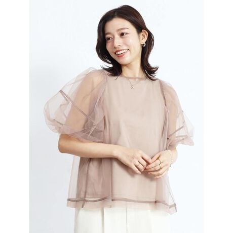 パフスリーブのチュールブラウスと、コットン100のタンクトップがセットになったトップス。