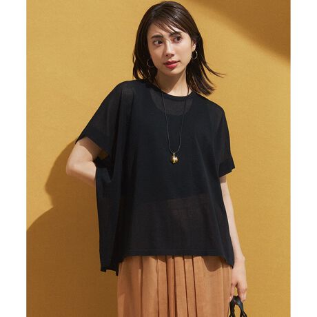 真夏に嬉しいリラクシーサイズのプルオーバー。タック袖のフォルム感が気になる二の腕をすっきりカバーし、オフボディのシルエットで見た目も着心地も清涼感抜群です。程よくシアーな軽い素材感で大人カジュアルが快適に決まる、夏にぴったりな一枚。カラーは印象引き締まるブラック(#005)、明るい雰囲気のライトオレンジ(#022)、抜け感のあるダークブラウン(#035)、ニュアンス感のあるモスグリーン(#053)、洗練された印象のダークブルー(#065)の5色展開です。