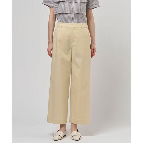 ■デザイン無駄のないシルエットが、品よくすっきりとした印象を与えるストレートパンツ。ウエスト部分はタブと釦ディテールを施し、トップスをインしてもスマートに決まるデザインです。後ろウェスト部分はゴム仕様で、程よくフィットしながらも快適な穿き心地を実現。カジュアルな着こなしにも、きれい目なスタイリングにも馴染む万能なパンツです。同素材のジャケットやスカートとのセットアップで決めれば、セレモニーや通勤シーンにも対応可能。シーンを選ばず長く愛用できる、大人のワードローブに欠かせないアイテムです。裏地なしです。