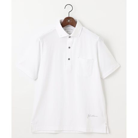このポロシャツは、共地の隠しバンドカラー仕様により、ビジネスシーンでも失礼のないスタイルを実現。ジャケットの下でも整った印象を与えるデザインで、さまざまなコーディネートに合わせやすいのが特徴です。裾にはアブード氏のサイン刺繍が施され、オリジナリティを加えています。