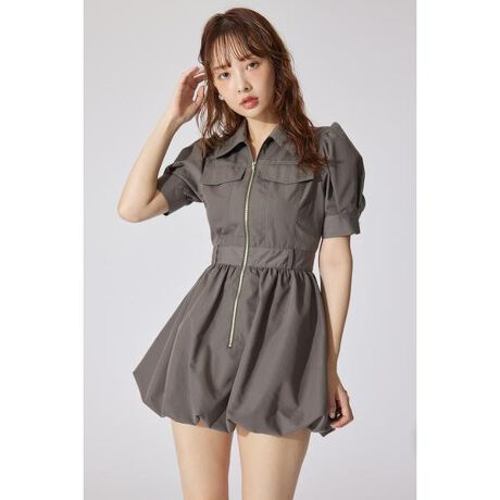 【トレンドのバルーンデザインが今時なミニロンパース】■ポイントフロントジップでエッジを効かせたバルーンでデザインがポイント。ミニワンピースと見せかけ、きちんとインナーショーツがセットされているので短い丈でも安心して着用していただけます。■ディテールクールな印象を与えるためにステッチをあえて配色にしデザインがより分かりやすいように仕上げました。また胸元のポケットディテールでワークなイメージを与えカジュアルに落とし込み、バルーンもたっぷりの分量を出しふんわりと足が細く見えるのも拘りです。■スタイリングロンパース1着でも可愛いですし、アレンジ方法としてスカーフなどをウエストのベルトループに結んだり、スカーフを襟下に付けて指輪を通してリボン風にするのもトレンドでおすすめ。■生地透け感:なし裏 地:あり伸縮性:なし光沢感:なし厚 さ:なし■商品のお気に入り登録お気に入りアイテムの再入荷・在庫1点などの通知を受け取ることができます。[注意事項]※画像の商品はサンプルです。実際の商品と仕様、加工が若干異なる場合があります。※画像の商品は光の照射や角度、お使いのモニター環境により、実物と色味が異なる場合がございます。※着用、お取り扱いの際は、アテンションタグをご確認ください。