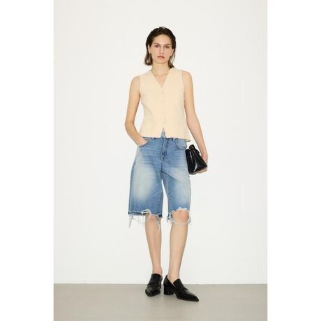 THROW by SLY【RIPPED HALF DENIM PT/BE】■POINT:大胆なダメージ加工が目を引くハーフデニムパンツ。■DETAIL:程よく使い込んだような立体的な表情の洗い加工を施してから裾を解き、さらにダメージを加えた事で着用するだけでこなれ感の出せるアイテムに。程よい太さで子供っぽくなり過ぎないシルエットなのでトップスが合わせやすいです。デイリーに使いやすい中濃色のライトブルーと落ち着いた色味のブラウンに仕上げた2色展開となっています。■STYLING:デザイン性のあるデニムなのでシンプルなトップスと合わせるだけで様になり、普段のコーディネートを一気にアップグレードしてくれるアイテムです。■FABRIC/MATERIAL:コットン100%の柔らかいデニム生地を使用。■透け感:なし■光沢感:なし■伸縮性:なし■裏 地:なし本品は、素材特性上以下の点にご注意ください。・着用や洗濯につれ退色し、独特な色変化が生じます。・雨や汗等の湿った状態、着用や洗濯、クリーニングによって他の衣類、雑貨、家具等に色落ちします。・白・淡色との組み合わせは避けて下さい。・淡色は光(紫外線)に弱いため変色する事があります。直射日光や蛍光灯の光に長時間さらさないようご注意下さい。・クラッシュやダメージ加工の製品は、着用や洗濯につれて加工箇所の広がりが生じる事がありますがご了承下さい。・着用や洗濯につれ多少の縮みやネジレ(製品がねじれて見える状態)が生じる事があります。・ボタンやリベットなどの金属部分を使用している場合は突起部分で人体や対象物にキズを負わせる恐れがありますのでご注意下さい。[注意事項]※画像の商品はサンプルです。実際の商品と仕様、加工が若干異なる場合があります。※画像の商品は光の照射や角度、お使いのモニター環境により、実物と色味が異なる場合がございます。※着用、お取り扱いの際は、アテンションタグをご確認ください。※一部予約商品につきましては生産上の都合によりお届け予定日や店頭発売と前後する場合もございます。※追加生産商品は、一部の店舗、通販で販売中の場合がございます。予めご了承下さい。