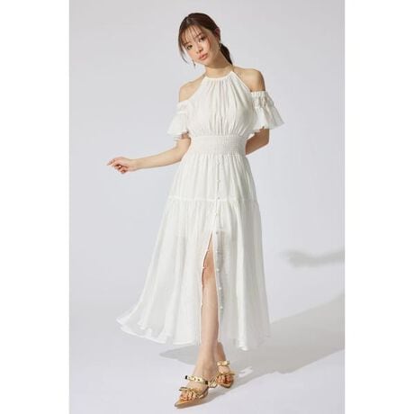 【1枚でコーデが決まり肌見せが女性らしい魅力的な2WAYロンパース&ワンピース】■ポイント今季トレンドデザインのホルターネック仕様の女性らしいロンパース&ワンピースが登場。スカートのセンターには開閉可能なボタンデザインを施し、ボタンを外すとショートロンパースとして着用可能な華やかなアイテムです。ワンピースはフレアワンピースとして着用でき、ウエストをシャーリングにしているのでスタイルアップが叶います。また、パンツ下にはスナップボタンを取り入れているので、着脱の手軽さが叶いお手洗いも手間なく済ませることが可能にしました。普段の着用はもちろん華やかに決まり、旅行や、特別なシーンでも活躍できるロンパース&ワンピースです。■ディテールネックにはチェーンを付け華やかさを演出。ホルターネックでも、脇の肌が見えすぎないようなパターンでデザインし袖フレアをセットすることで腕周りを華奢に見せられるようにしました。スカートのボタンを閉めてワンピースとして着用してもボタンを開けてショートロンパースとして着用することもOKの嬉しい2WAYです。パンツ部分の下にスナップボタンを仕込み、私生活をストレスなく過ごせるようなアイテムに仕上がっているのも魅力的です。■スタイリング足元はサンダルでスニーカーでもなんでもシーンに合わせてスタイリングがくめます。■生地透け感:あり裏 地:あり伸縮性:なし光沢感:なし厚 さ:薄手■商品のお気に入り登録お気に入りアイテムの再入荷・在庫1点などの通知を受け取ることができます。[注意事項]※画像の商品はサンプルです。実際の商品と仕様、加工が若干異なる場合があります。※画像の商品は光の照射や角度、お使いのモニター環境により、実物と色味が異なる場合がございます。※着用、お取り扱いの際は、アテンションタグをご確認ください。