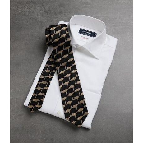 高級感のあるシックな色味と存在感のある大柄が印象的な幾何学柄ネクタイ。無地のスーツやジャケット・ブレザーに合わせやすく、コーディネートのアクセントになる1本です。