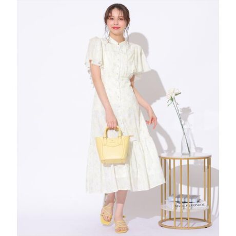 【女性らしく清楚で可憐な印象を纏う、スモールフラワーラッフルフリルスリーブワンピース】【Point】・柔らかなトーンで配色した小花柄が女性らしく優しげな印象に仕立てるラッフルフリルスリーブワンピース。・プチハイネックでほど良くクラシカルに。オフィスでも着やすいきちんと感をプラスします。・後ろに向かって流れるようなラッフルスリーブが涼しげな印象に。気になる二の腕まわりも自然にカバーしてくれます。・バスト下での切替が腰位置を高く見せてくれるので、着るだけでスタイルアップ効果を期待できる美シルエットワンピースです。・バックレースアップで後ろ姿まで抜かりなく。ウエストを体型に合わせたぴったりサイズに調節して着用いただけます。・ご自宅でのお手入れ可能な、イージーケアなところも嬉しいポイントです♪ケア方法:手洗い可能透け感:なし裏地:あり伸縮性:なし(ウエスト部分:後ろゴムあり)光沢感:なし生地の厚さ:中肉