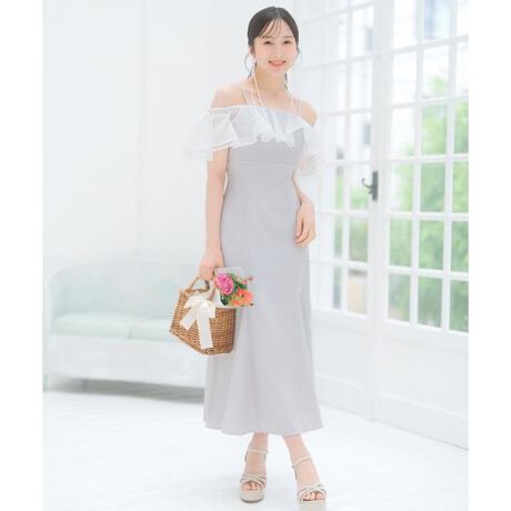 夏の陽射しに映える透明感とさりげない肌見せが叶える、大人フェミニンなマーメイドワンピース【Design】・透明感を引き立てるシアーはメロウフリルと、オフショル風デザインが魅力のキャミワンピース。・女性らしい曲線美を演出するマーメイドシルエットが、エレガントで上品な印象に!・肩やデコルテを美しく見せて、夏らしい爽やかな雰囲気を演出します。・ウエストバックはゴム&レースアップ仕様で、サイズ調整が可能なのも嬉しいポイント♪・伸縮性のあるフリルショルダーと背中ファスナーで、着脱もスムーズ。・カーディガンやシャツブラウスを羽織って、春夏のレイヤードスタイルやおしゃれな夏コーデにもぴったり◎【Fabric】・軽い着心地で上質感のあるポリエステル素材を使用。・裏地付き。・ご自宅でお手入れが出来るのも嬉しいポイント♪・ピンク、サックス、ミントの3色展開となります。【Care】手洗い可能