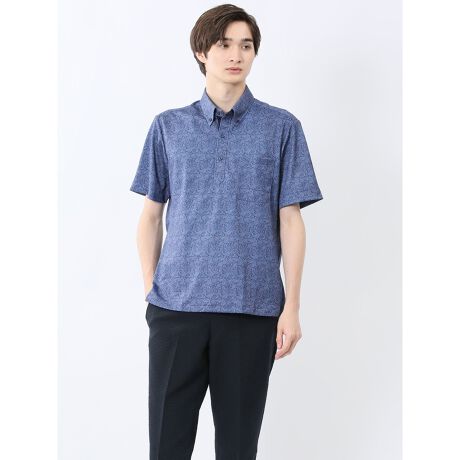 夏場のクールビズに大活躍してくれる、プルオーバータイプのビズポロです。涼しげなペイズリー柄のプリントと衿腰内側と下前立の別布がポイント。衿型は衿立ちが良く、オフィスカジュアルにもぴったりなボタンダウンを採用しています。台衿を付けたドレスシャツ仕立てで、キチンと感のあるルックスと快適な着心地を兼備した一枚です。