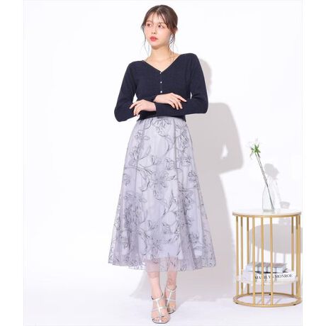 【大人な表情の線描きフラワーが品の良い着映えを叶えるチュールフレアスカート】【Point】・エアリーなチュール素材に、複数の糸で奥行きを持たせた大人見えの線描きフラワー柄が品良く着映える一着。・ハイウエストでの切替と、骨盤まわりは広がりを抑えたすっきりとしたシルエットで着やせ効果を期待できます。・裾に向かってふんわり広がるフレアラインが、歩き姿をエレガントに見せ、気品ある着こなしを楽しめるスカートです。ケア方法:ドライクリーニング透け感:あり裏地:あり伸縮性:なし(ウエスト部分:後ろゴムあり)光沢感:なし生地の厚さ:薄手