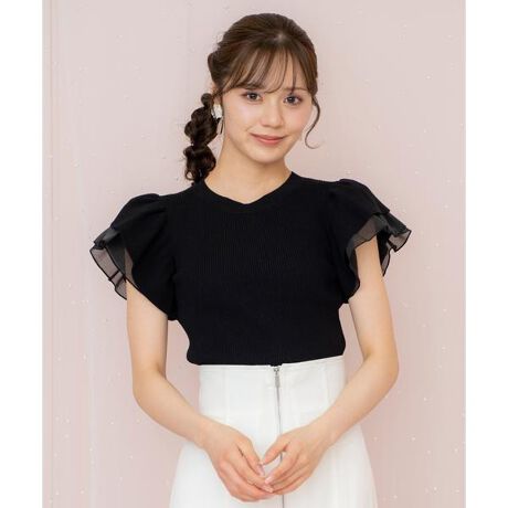 ニットで作る立体的なフレアシルエットが華やかなフレアスリーブプルオーバー【Design】・存在感たっぷりのボリュームフリルが目を惹く、華やかなフレアスリーブトップス。・首元はハイネックデザインで、きちんと感と上品さを演出します。・袖のフリルにはシアー素材を重ね、夏らしい抜け感と軽やかさをプラス。・シンプルなボトムスとあわせても着映えが叶う、主役級のデザインが魅力。・ハイウエストのボトムスと合わせれば、袖のボリュームがより際立ちスタイルアップ効果も◎・トレンドのフェミニンコーデやきれいめスタイルに取り入れやすく、デイリーからお出かけまで活躍します。【Fabric】・伸縮性のあるニット生地を使用。・袖部分には透け感のあるシアー生地をレイヤードしています。・ご自宅でお手入れが出来るのも嬉しいポイント♪・ホワイト、ピンク、ボーダー、ブラックの4色展開となります。【Care】手洗い可能