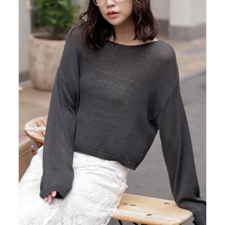 ゆったりとした身頃でリラクシーな抜け感がかわいい、からっとした風合いのニット。フロントはボートネック、バックスタイルは深めのUネックでヘルシーな印象です。ルーズな着心地ながら、肩先から共地リボンを付けてポイントにしつつ、肩からずり落ちないように仕上げています。デニム合わせでカジュアルにも、ティアードスカート合わせでフェミニンカジュアルなスタイリングもおすすめです。※モデルの着用画像の場合、光の当たり具合により、実際の色味と異なって見えることがございます。色味は、商品単体の画像をご参照ください。