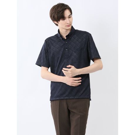 夏場のクールビズに大活躍してくれる、プルオーバータイプのビズポロです。エンボス加工のチェック柄と衿腰内側にあしらったドット柄の別布がポイント。衿型は衿立ちが良く、オフィスカジュアルにもぴったりなボタンダウンを採用しています。台衿を付けたドレスシャツ仕立てで、キチンと感のあるルックスと快適な着心地を兼備した一枚です。