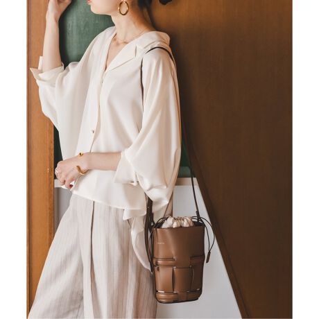 ベルトをメッシュのように組み込んだ、リゾート感の中にもモダンな一面を覗かせるショルダーバッグ。