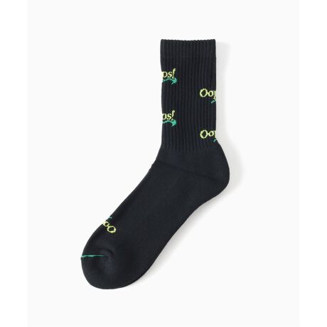 遊び心たっぷりの「Oops!」ロゴが散りばめられたユニークなソックスのrelume別注ブラックカラーが登場。