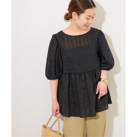 ふんわりとしたパフスリーブが女性らしさをプラス。
