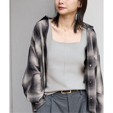 程よい肉感のスムース編みでできているスクエアネックラインが特徴のタンクトップはボディラインも拾いにくく1枚でも着ても様になる1着。スクエアのネックラインがデコルテを美しく見せてくれる女性らしいアイテムです。