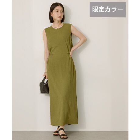 肌触りの良い表面感のある素材で仕立てたワンピース。フロントはシンプルながらバックホールが目を惹き、女性らしいヘルシーな肌魅せスタイルを演出します。ウエストのドロストコードでお好みのフィット感に調整できるのも嬉しいポイント。合わせ方次第でロングシーズン活躍するおすすめのアイテムです。