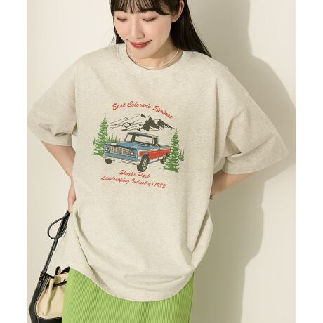 CARプリントTシャツ USカジュアル スクリプトロゴ ベーシックカラー 汎用性高い カジュアル 春夏 トップス プルオーバー 30代 40代 レディース カジュアル 春夏 25SS AMERICAN HOLIC AMERICAN HOLIC アメリカンホリック アメホリ