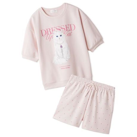 ソフトな肌触りの裏毛素材に、アーティスティックなラグドールのイラストをプリントしたカジュアルなセットアップです。