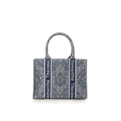 ◇Samantha Thavasa(サマンサタバサ)のエキゾチックモチーフジャガードハンドバッグジャガードをパネル使いしたオリジナル感と、細部までこだわり抜いた気品が溢れるハンドバッグ。【デザイン】バッグのサイズに合わせて日本国内で丁寧に織り上げたオリジナルのジャガード生地は5色の糸を繊細に折り重ねることにより幻想的な模様を表現しています。縦のロゴの部分も含めて1枚の生地で仕立てており、ロゴの配置までを細かく計算しながら作られた、技術が光る贅沢な一品になっています。ジャガードでもカジュアルになりすぎず上品にお持ちいただけます。軽量で太めのショルダーもついているのでシーンによって使い分けできるのも嬉しいポイント。【素材】コットンとポリエステルで織り上げたジャガード生地を使用しています。【サイズ】A4サイズ…×、長財布…〇、500mlボトル…〇