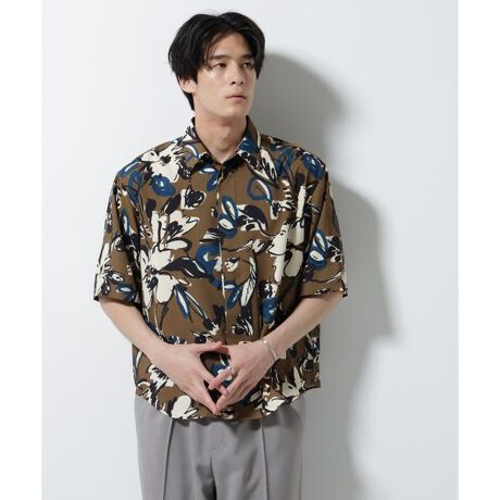 オリジナルのビッグフラワー柄が特徴的な半袖シャツ